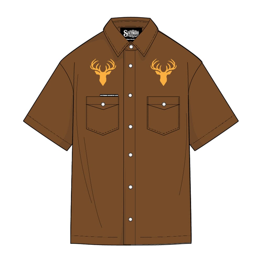 Featuring our signature high-performance, moisture-wicking fabric, this shirt handles the humidity of the South with ease. We’ve traded the traditional camo for a rugged, deep field brown, accented by dual embroidered "Rack" logos above the pockets. It’s a nod to the hunt and a commitment to the after-party.