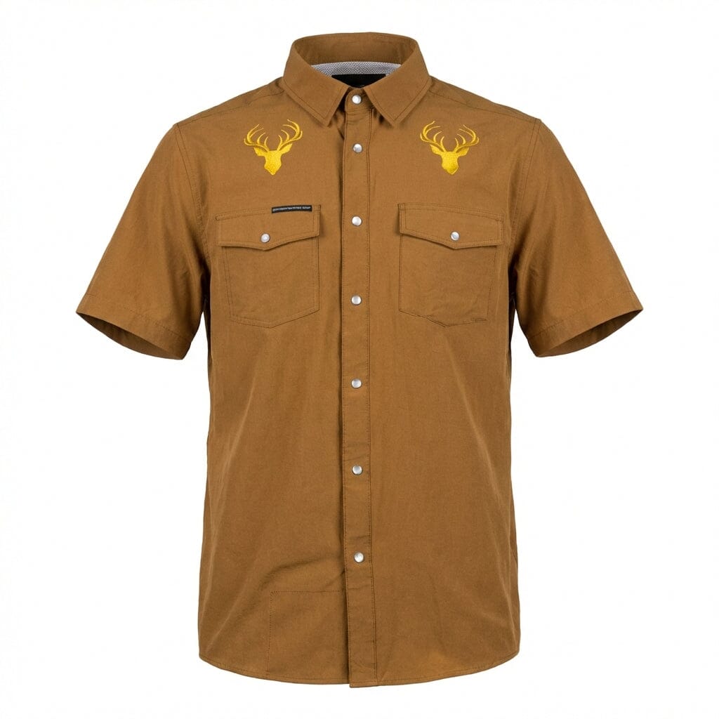 Featuring our signature high-performance, moisture-wicking fabric, this shirt handles the humidity of the South with ease. We’ve traded the traditional camo for a rugged, deep field brown, accented by dual embroidered "Rack" logos above the pockets. It’s a nod to the hunt and a commitment to the good times.